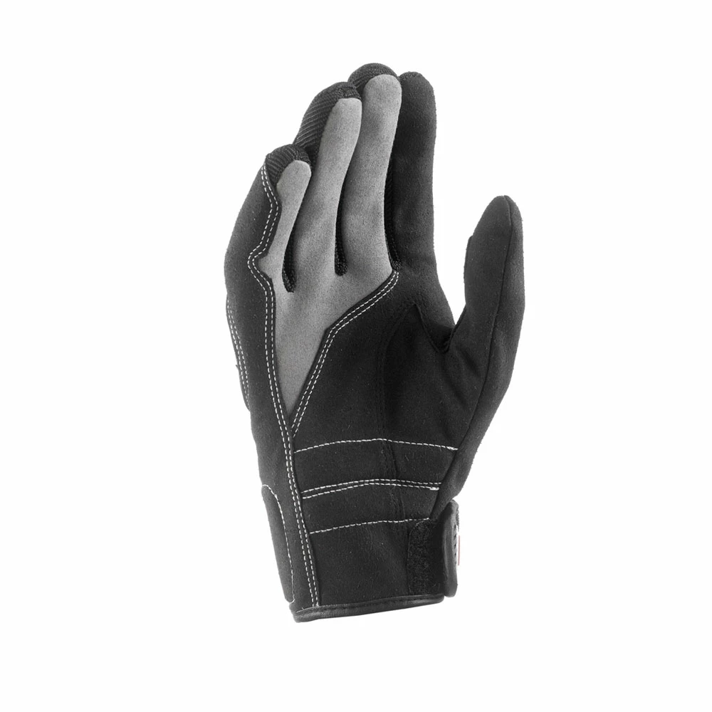 Guanto sportivo estivo in tessuto ventilato. Dorso: tessuto elasticizzato ventilato. Palmo: microfibra anti-scivolo. Tessuto elasticizzato infradito. Rinforzo su laterale guanto.. Rinforzi in TPR (gomma termoplastica) a densità differenziata sulle nocche. Imbottiture su palmo, dorso e laterale guanto. Polso regolabile tramite cinturino, con applicazione iniettata in TPR.